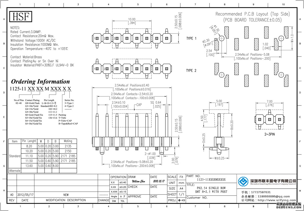 產(chǎn)品分類:排針連接器 產(chǎn)品規(guī)格: 聯(lián)豐盈 2.54MM 單排 180 SMT 排針 生產(chǎn) 產(chǎn)品介紹:額定電流:3.0amp電流電阻:20m最大絕緣電阻:1000m民承受電壓:AC 500V /分鐘工作溫度:40﹣℃+ 105℃接觸