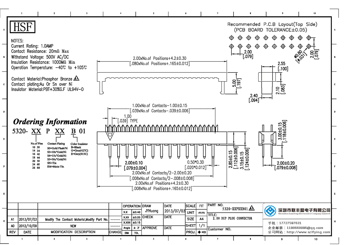 產(chǎn)品分類:DIP插頭連接器 產(chǎn)品型號(hào):2.0MM 磷銅 亮錫 DIP PLUG 聯(lián)豐盈 廠家 技術(shù)參數(shù):額定電流:1.0amp電流電阻:20m最大絕緣電阻:1000mmin耐壓:1000V AC /分鐘工作溫度:40﹣℃+ 105℃接觸材