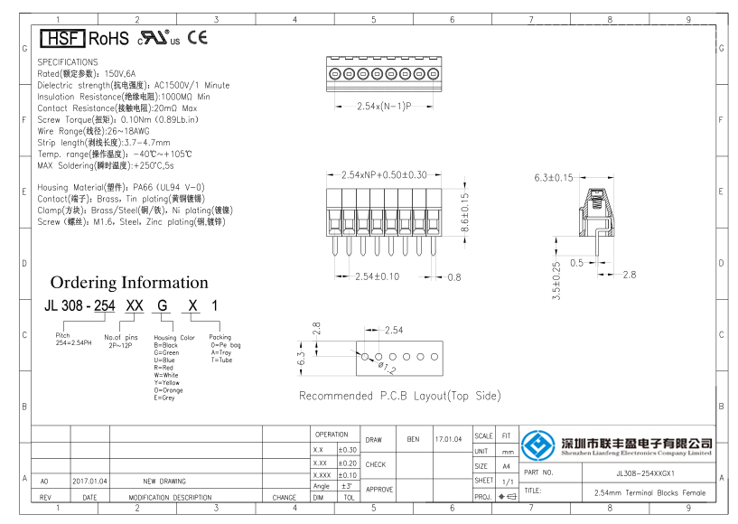 產(chǎn)品分類(lèi):接線(xiàn)端子 產(chǎn)品型號(hào):螺釘式PCB接線(xiàn)端子 間距2.54mm 詳細(xì)型號(hào):螺釘式PCB接線(xiàn)端子-JL308,間距2.54mm,CE認(rèn)證,UL證書(shū) 產(chǎn)品介紹:材質(zhì)電鍍(MATERIAL) , 螺絲(Screw)M2.0,鋼,鍍鋅