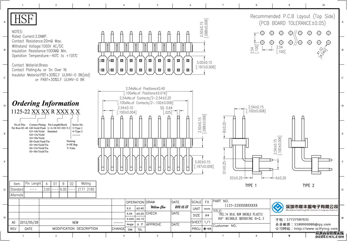 產(chǎn)品分類:排針連接器 產(chǎn)品規(guī)格: 2.54MM 雙層雙排 90DIP 排針 定制 技術(shù)參數(shù):額定電流:3.0amp電流電阻:20m最大絕緣電阻:1000m承受電壓:AC 500V /分鐘工作溫度:40﹣℃+ 105℃接觸材料: