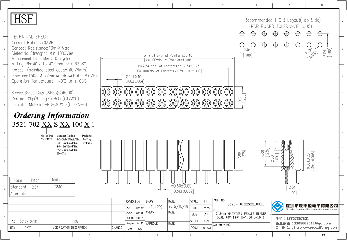 產(chǎn)品分類:圓孔排針排母連接器 產(chǎn)品型號(hào):耐高溫 2.54MM 雙排 端子長(zhǎng):10.0MM 圓孔排母 聯(lián)豐盈 技術(shù)參數(shù):額定電流:3.oamp接觸電阻:1om最大介電強(qiáng)度:MIN/1000vrms機(jī)械壽命:最少500次交配
