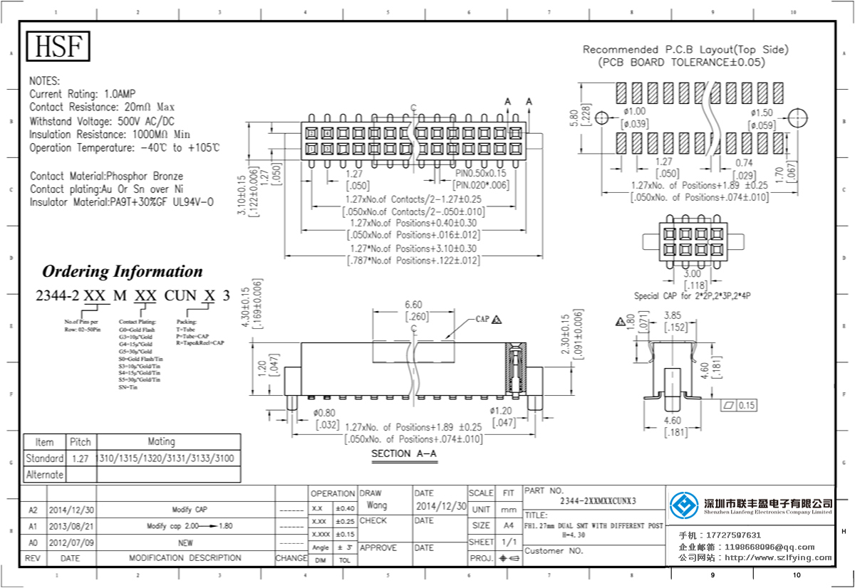 產(chǎn)品分類:排母連接器 產(chǎn)品規(guī)格:聯(lián)豐盈 1.27 雙排排母 180 SMT 貼片型 H=4.4 帶大小外柱連接器 產(chǎn)品介紹:額定電流:1.0amp電流電阻:20m最大絕緣電阻:1000m民承受電壓:AC 500V /分鐘工作