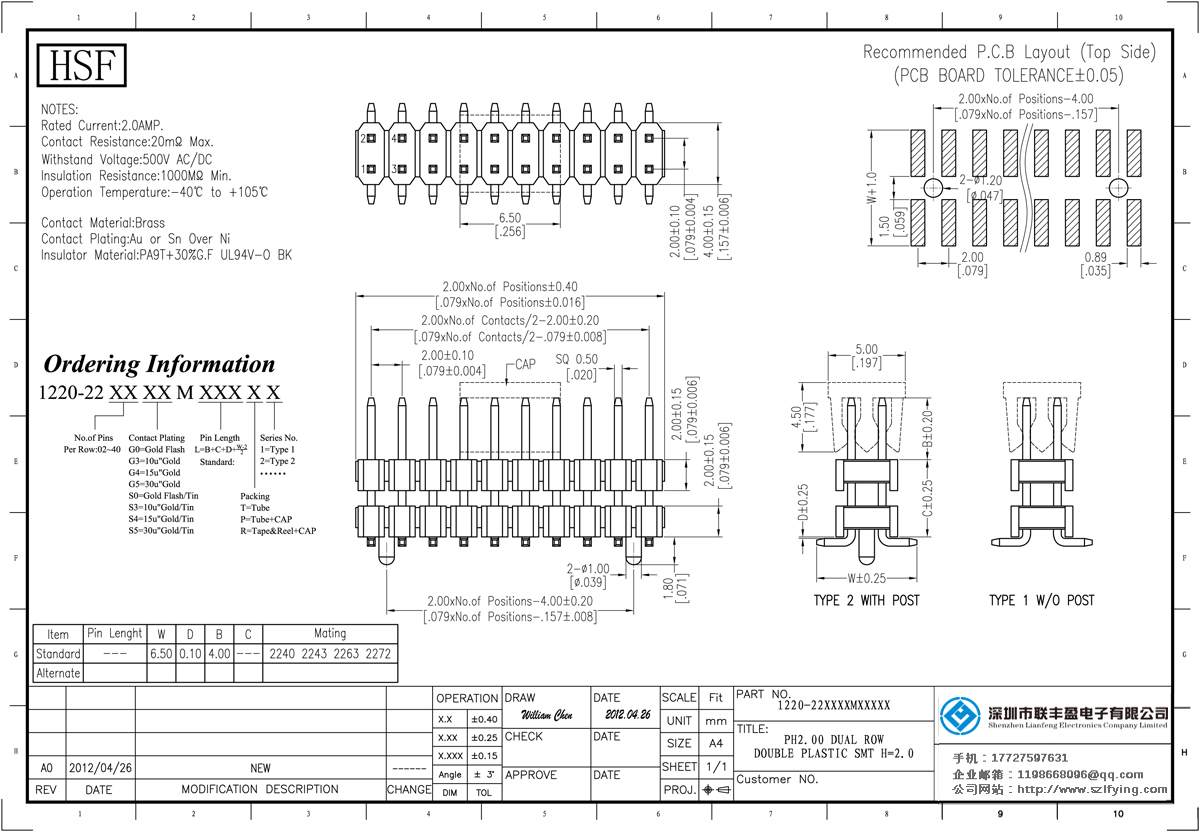 產(chǎn)品分類:排針連接器 產(chǎn)品規(guī)格:2.0MM 雙層雙排 加夾持蓋 排針 聯(lián)豐盈 產(chǎn)品介紹:額定電流:2.0amp電流電阻:20m最大絕緣電阻:1000m民承受電壓:AC 500V /分鐘工作溫度:40﹣℃+ 105℃接