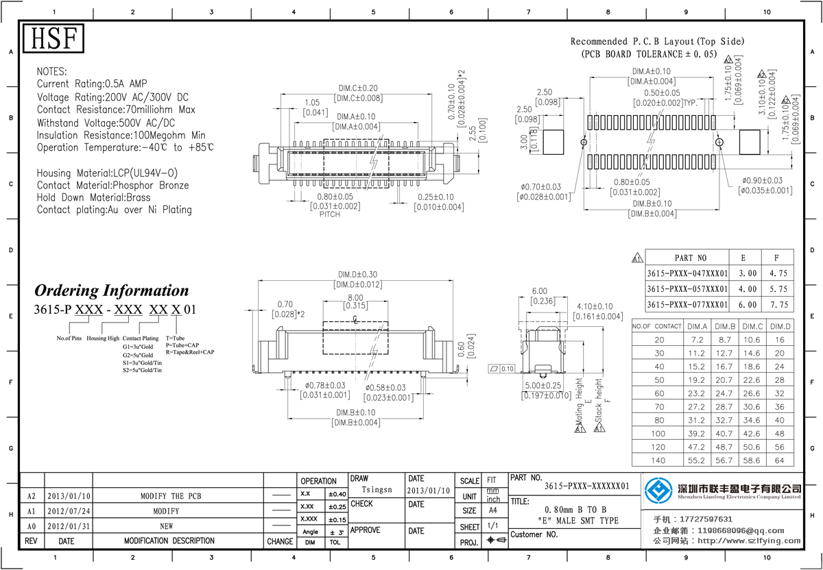 產(chǎn)品分類:Board To Board 連接器 產(chǎn)品型號(hào):聯(lián)豐盈 辦公設(shè)備 0.8MM 母座 卷裝 Board To Board 技術(shù)參數(shù):額定電流:0.5amp電流電阻:65m最大絕緣電阻:1000m承受電壓:交流250V /分鐘工作溫度: