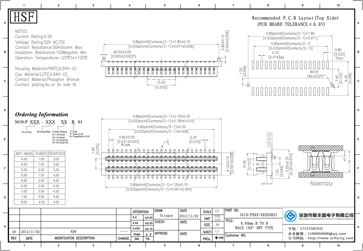 產(chǎn)品分類:Board To Board 連接器 產(chǎn)品型號(hào):0.8MM 公座Board To Board 聯(lián)豐盈 技術(shù)參數(shù):額定電流:0.5amp電流電阻:60m最大絕緣電阻:100m民承受電壓:AC 500V /分鐘工作溫度:40﹣℃+ 105℃接觸材