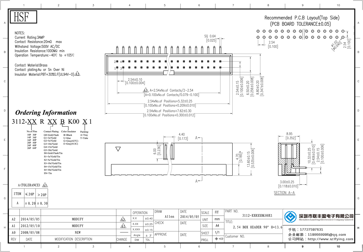 產(chǎn)品分類:簡易牛角連接器 產(chǎn)品型號: 2.54MM 散鍍?nèi)?滿PIN 90DIP 簡牛 聯(lián)豐盈 技術(shù)參數(shù):額定電流:1.52amp電流電阻:20m最大承受電壓:500V的交流/直流絕緣電阻:1000分鐘操作溫度:4