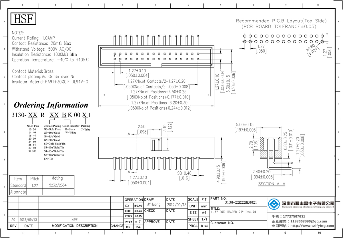 產(chǎn)品分類:簡易牛角連接器 產(chǎn)品型號:聯(lián)豐盈 抗氧化 1.27MM H=5.7 90DIP ,滿PIN 簡牛 廠家 技術(shù)參數(shù):額定電流:1.0amp電流電阻:20m最大絕緣電阻:1000m民承受電壓:AC 500V /分鐘工作溫度: